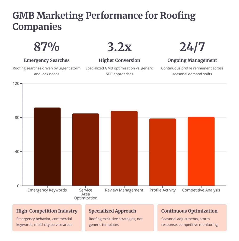 As a Google My Business marketing agency for roof companies, we treat your GBP as a living marketing asset that must evolve with demand, competition, and seasonality.